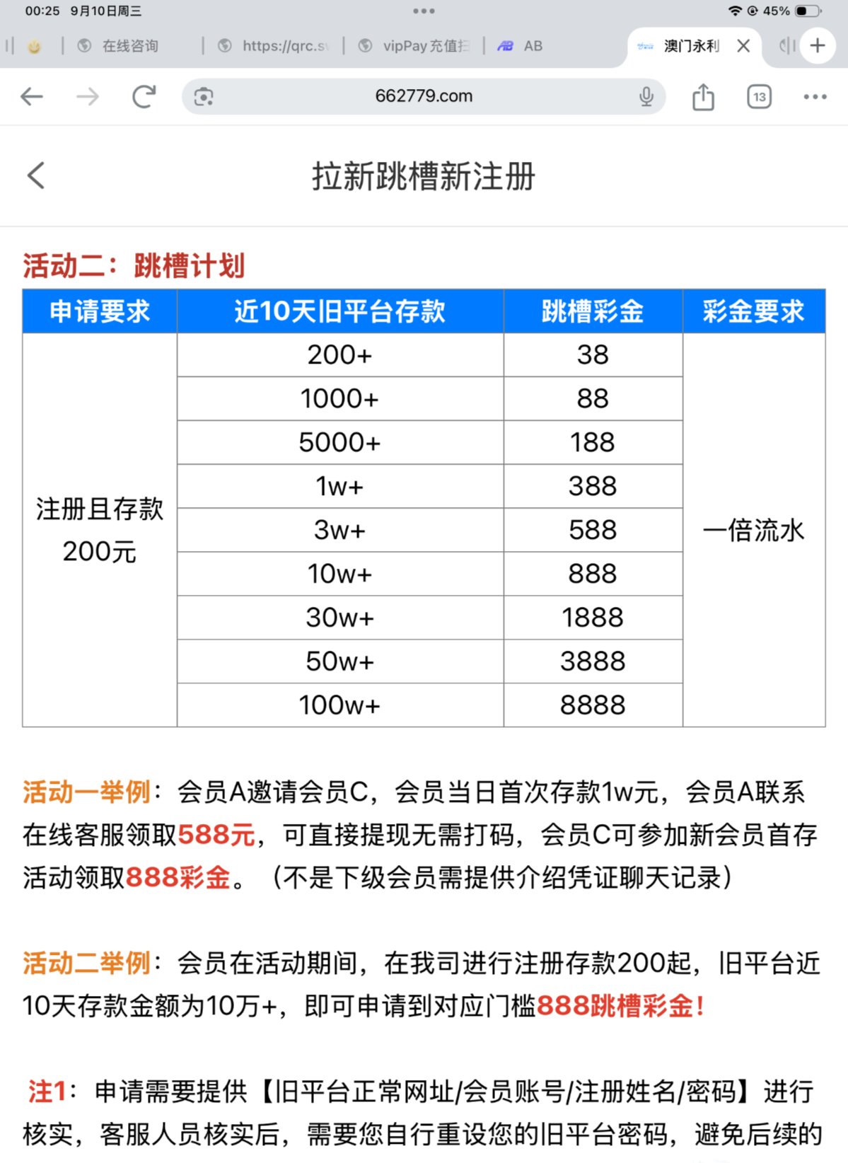 永利出了个新活动,跳槽彩金,需要近期10天内平台充值,达到就可以申请,最近有玩的老哥可以去,我申请到了388,但是打输了,