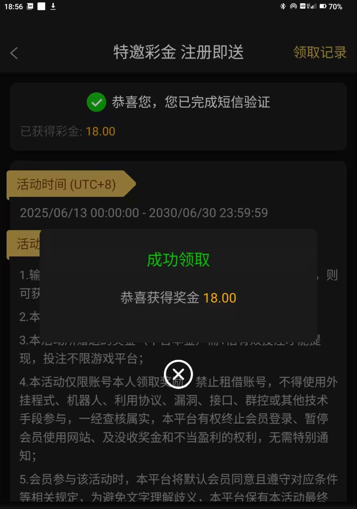 短信特邀彩金