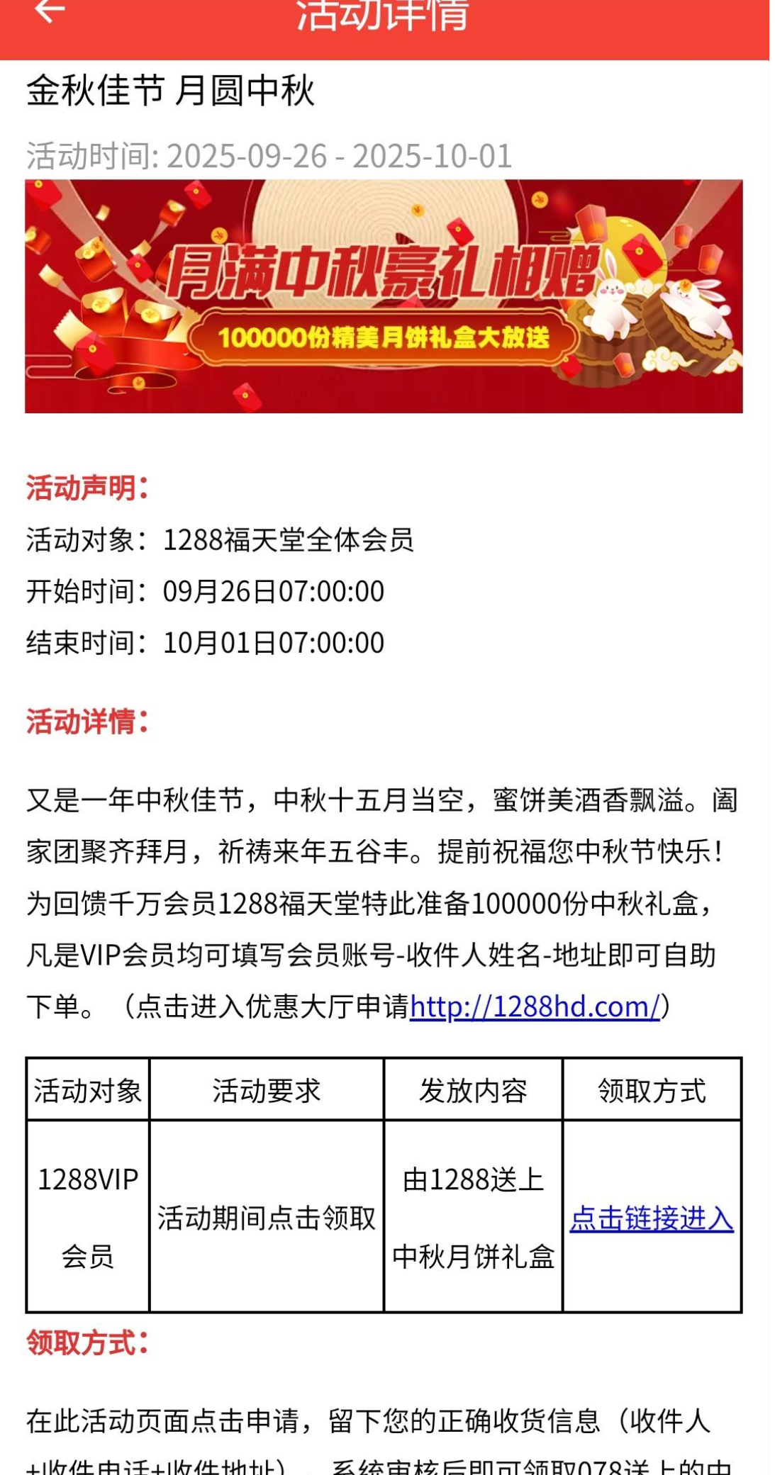 玩过1288彩票的,有等级的领中秋月饼礼盒。又是一年中秋佳节,中秋十五月当空,蜜饼美酒香飘溢。阖家团聚齐拜月,祈祷来年五谷丰。提前祝福您中秋节快乐!为回馈千万会员1288福天堂特此准备100000份中秋礼盒,凡是VIP会员均可填写会员账号-收件人姓名-地址即可自助下单。