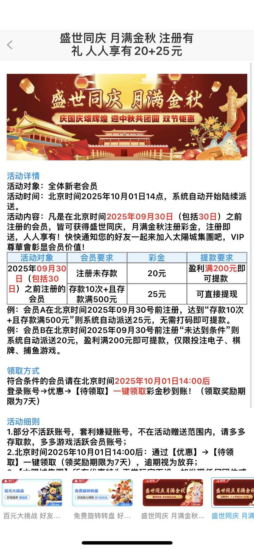 10.1月前注册的可以参加送20活动,活动10.1下午2点就可以参加,